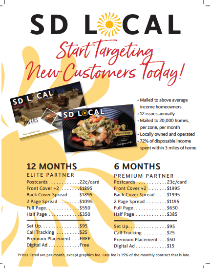 After years of helping businesses across the Bay Area promote their goods and services, in 2003 our founder and CEO, Paul Regin, saw an opportunity to lend his expertise to businesses in a way that would make a bigger impact for them: creating a monthly publication that reaches residents in North San Diego County, Marin and Sonoma Counties. SD Local was born out of a love for promoting local businesses and a passion for helping consumers engage with budding and well-established companies.